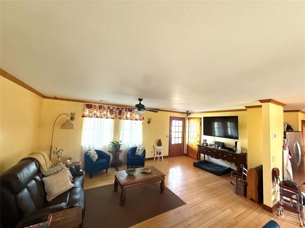 Sitting on 5 acres with a reflective pond is this expansive 4 bedroom, 3 bath home blending comfort with practical country living. Inside, the home is anchored with continuous hardwood flooring that flows throughout every room. The main living room features an open concept design with high ceilings, and natural light. A well appointed kitchen sits in the center of the home complete with tons of counter space, a special free standing stove, commercial size refrigerator/freezer, and a large island counter area. The master suite offers a private bath with an enormous walk-in closet. Two other additional bedrooms are located on the first floor along with another bathroom. Upstairs is a huge bedroom complete with a private bath, large walk-in closet with shelving, and a covered balcony porch overlooking the pond full of fish. This room could also be an additional bedroom, a bonus room for children's toys, a sewing room, or wonderful office. A two car garage plus garage is attached to the home. Beyond the home, the property is equally impressive featuring a dedicated rifle range built with proper berms for safety, making it ideal for target practicing. A separate structure offers storage and a shop area. A geothermal system provides reliable cost-effective heating and cooling year-round. The land itself is versatile, whether for outdoor recreation, gardening, or simply enjoying the quiet surroundings. Property located within the Bethel Acres School District. Close to schools but only minutes from the conveniences of the City of Shawnee. This property is priced to sell now!